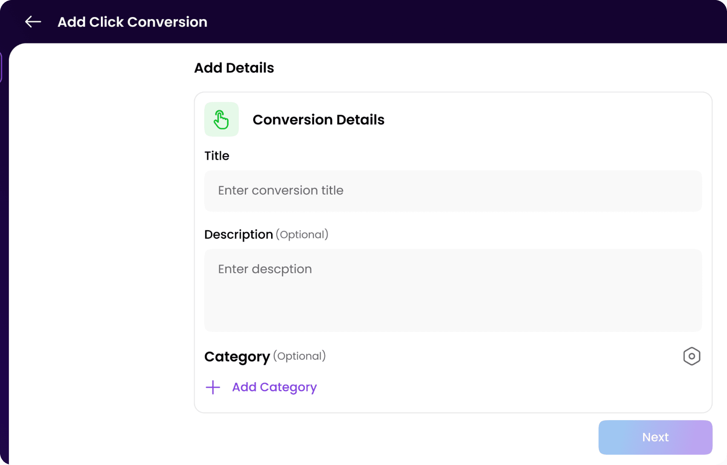 Select an existing category or create a new one to group your conversion.