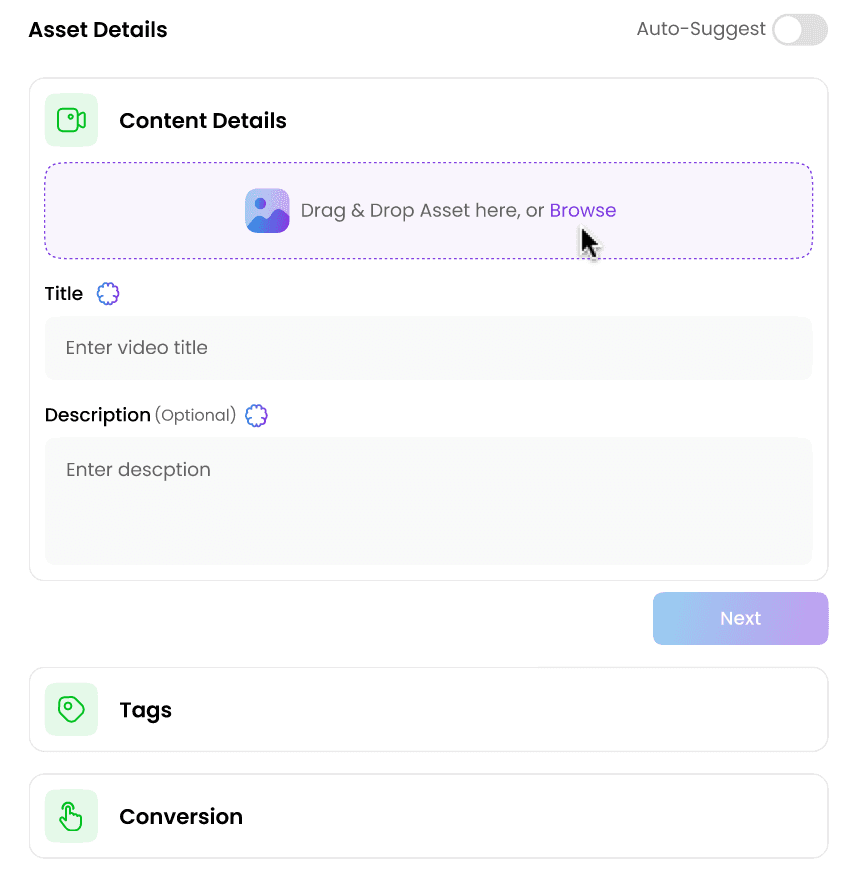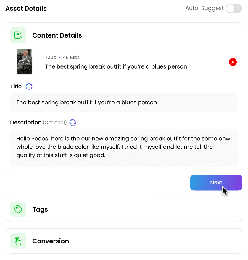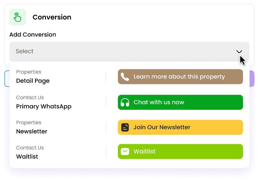 Attach a conversion to your content to include a CTA and drive engagement. The selected conversion places its design and CTA at the bottom of your uploaded video.