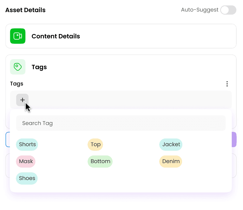 Under Tags, click on the ‘+’ button to add a tag to your content.