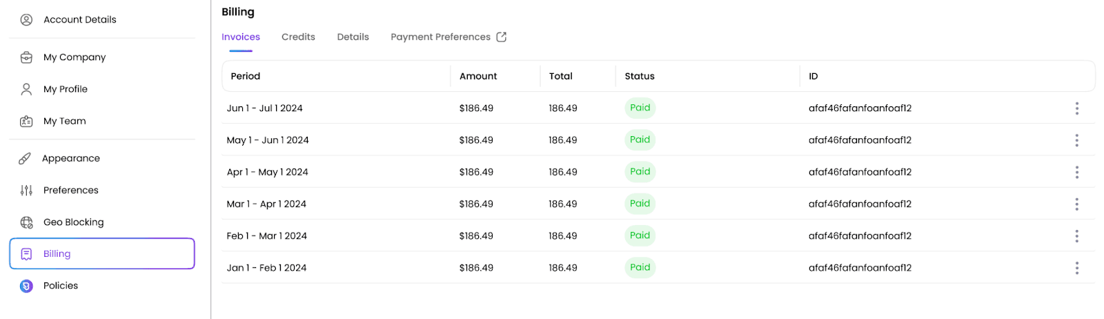 Select the Billing tab, then click Invoices.
