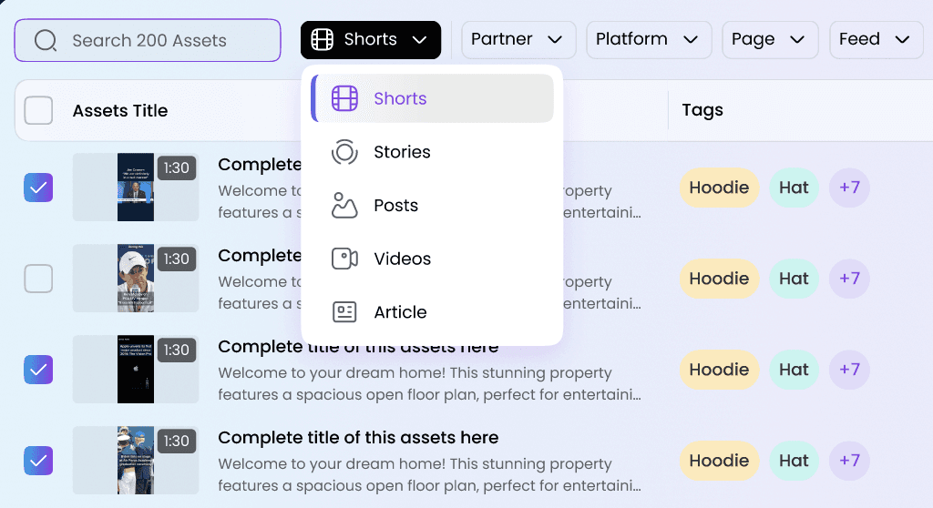 Content Format - View content from Shorts, Stories, Posts, Videos, or Articles