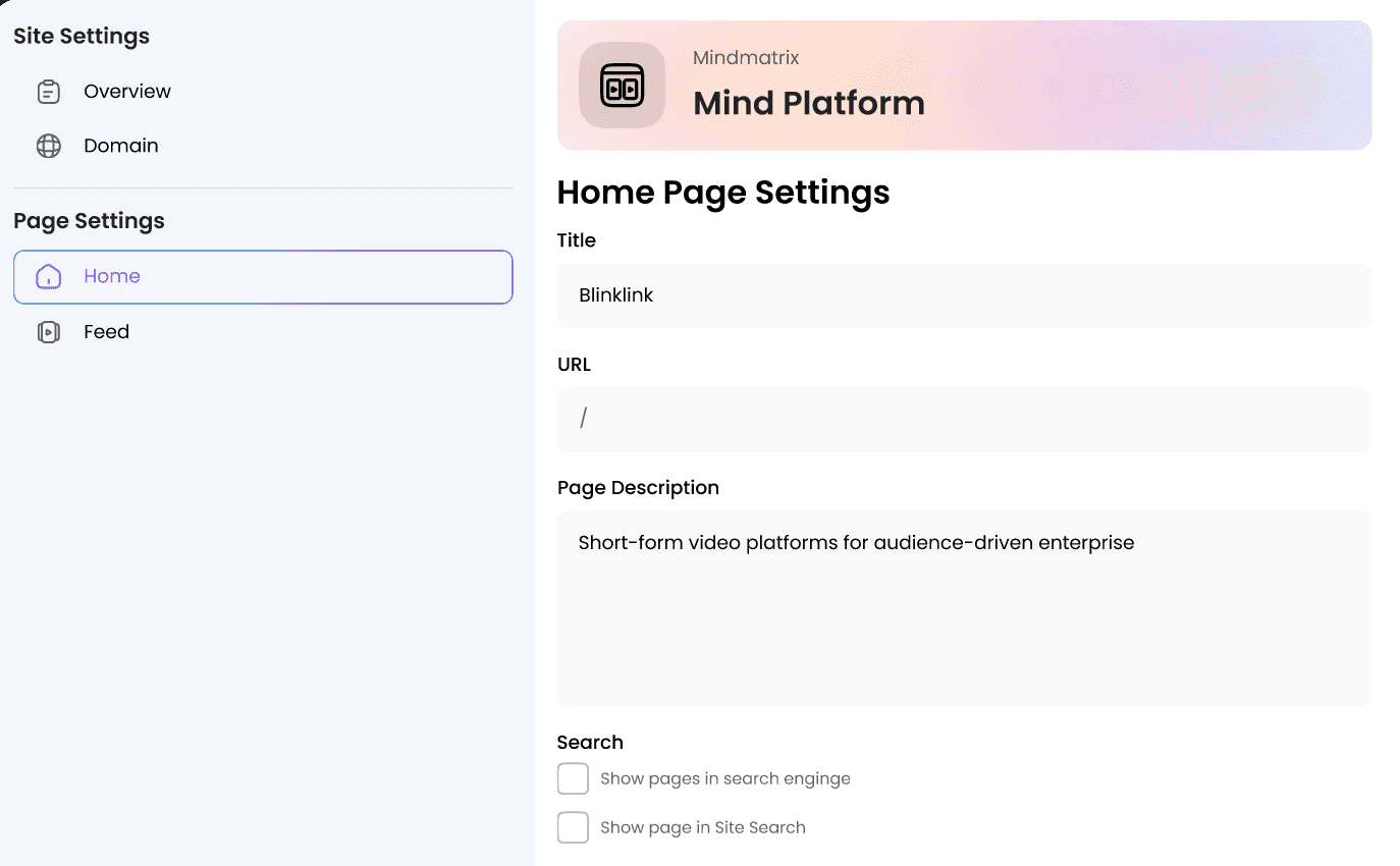 Show page in site search - Enable or disable to make the page searchable using your site’s internal search