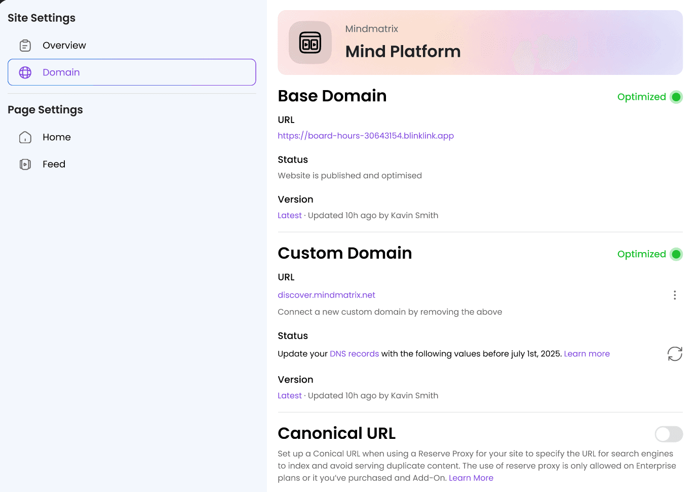 Canonical URL - Enables a canonical URL when using a reserve proxy