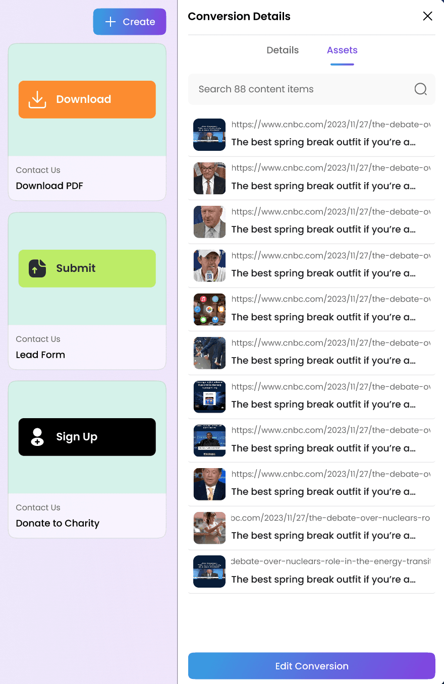 See all Assets associated with a specific conversion directly from the Conversions tab.