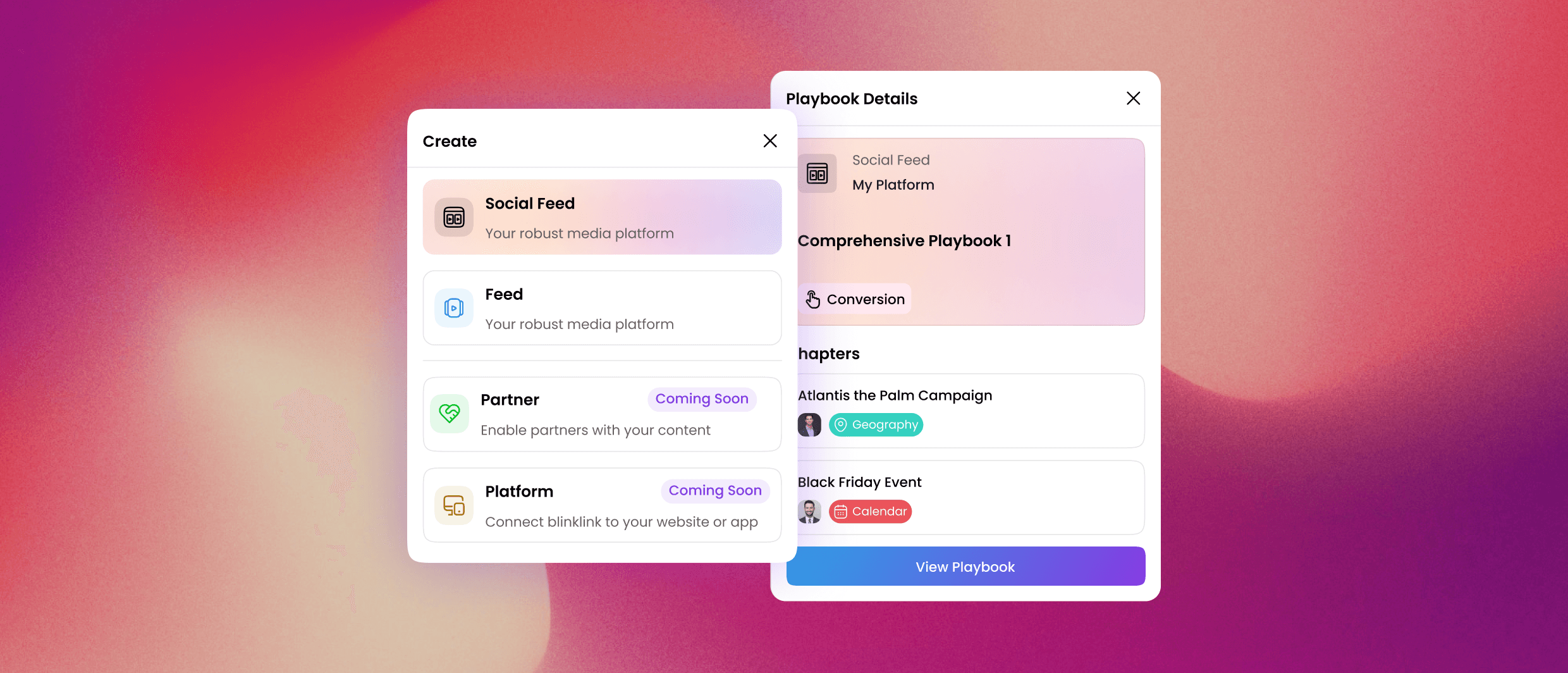 Create App allows content creators to create a profile and offer enterprises using Blinklink Curate, their earned media